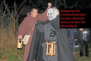 Dr. Christian Heise ist seit 20 Jahren Gästeführer der Stadt Brandenburg. „Geschichte muß erlebbar und lebendig sein.“ Daher schlüpft der Künstler in Figuren aus vergangenen Zeiten und nimmt die Gäste mit auf eine Reise voller Geschichte(n), Anekdoten und szenischem Spiel. Bernd Knoll lebt und brennt für das Mittelalter, verfügt über einen Schatz an mittelalterlicher Gewandung und erfreut sich am (Schau)Spiel mit den Gästen.