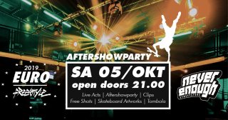 Die offizielle Aftershowparty der European Freestyle Skateboarding Championships 2019 im Haus der Offiziere in Brandenburg an der Havel am Samstag den 5. Oktober. Einlass ab 21.00 Uhr