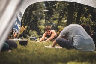 Die Yoga-Sessions mit Nele finden im Freien, in einem ruhigeren Bereich im Slawendorf statt.